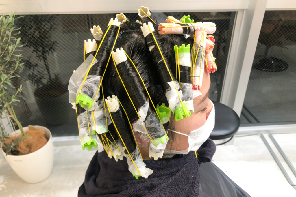 エアウェーブという機械を使ってパーマをかけているので、