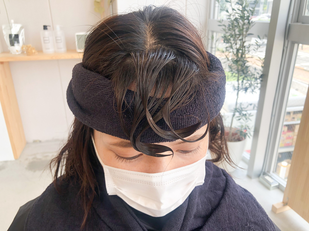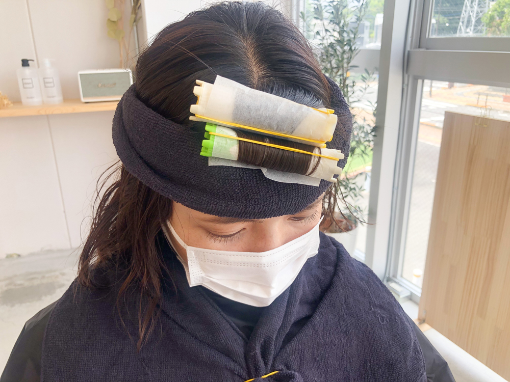 という事で早速前髪にパーマをかけてストレスを少なくして前髪を伸ばせるようにしていきます。