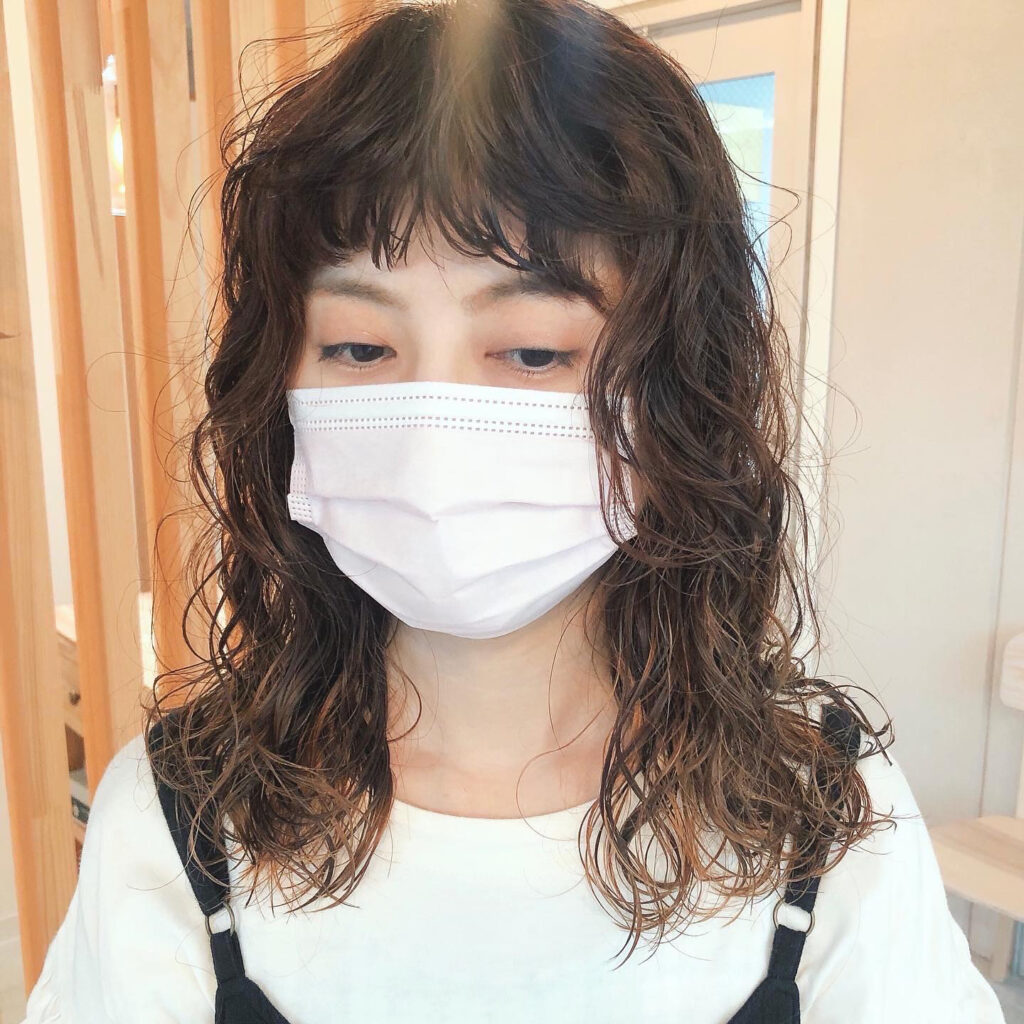 全体的に無造作にトップからウェーブのパーマをかけています。